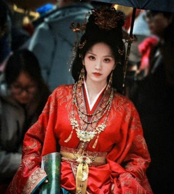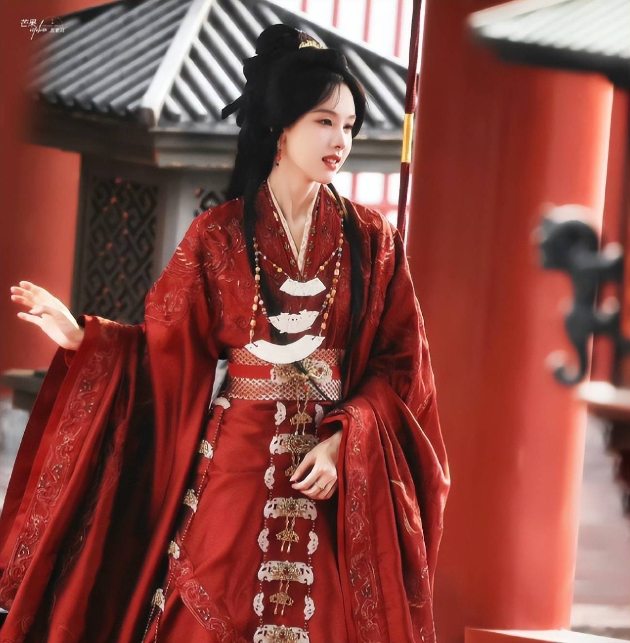 陈都灵在《翘楚》中的另一套红色朝服颇具故事感,除华丽红裙外,身上饰品很考究,和博物馆陈列的无异,可见剧组在女主妆造上颇为用心。