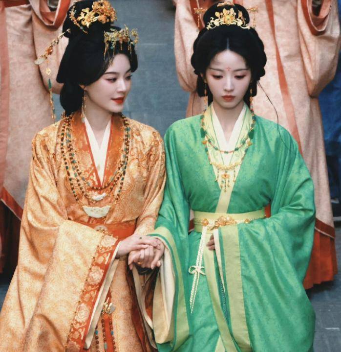 另一组和毛林林同框的路透故事感十足,绿色衣服穿在身上尽显当家主母的霸气感,与一旁端庄大气的华丽美人风格迥异。